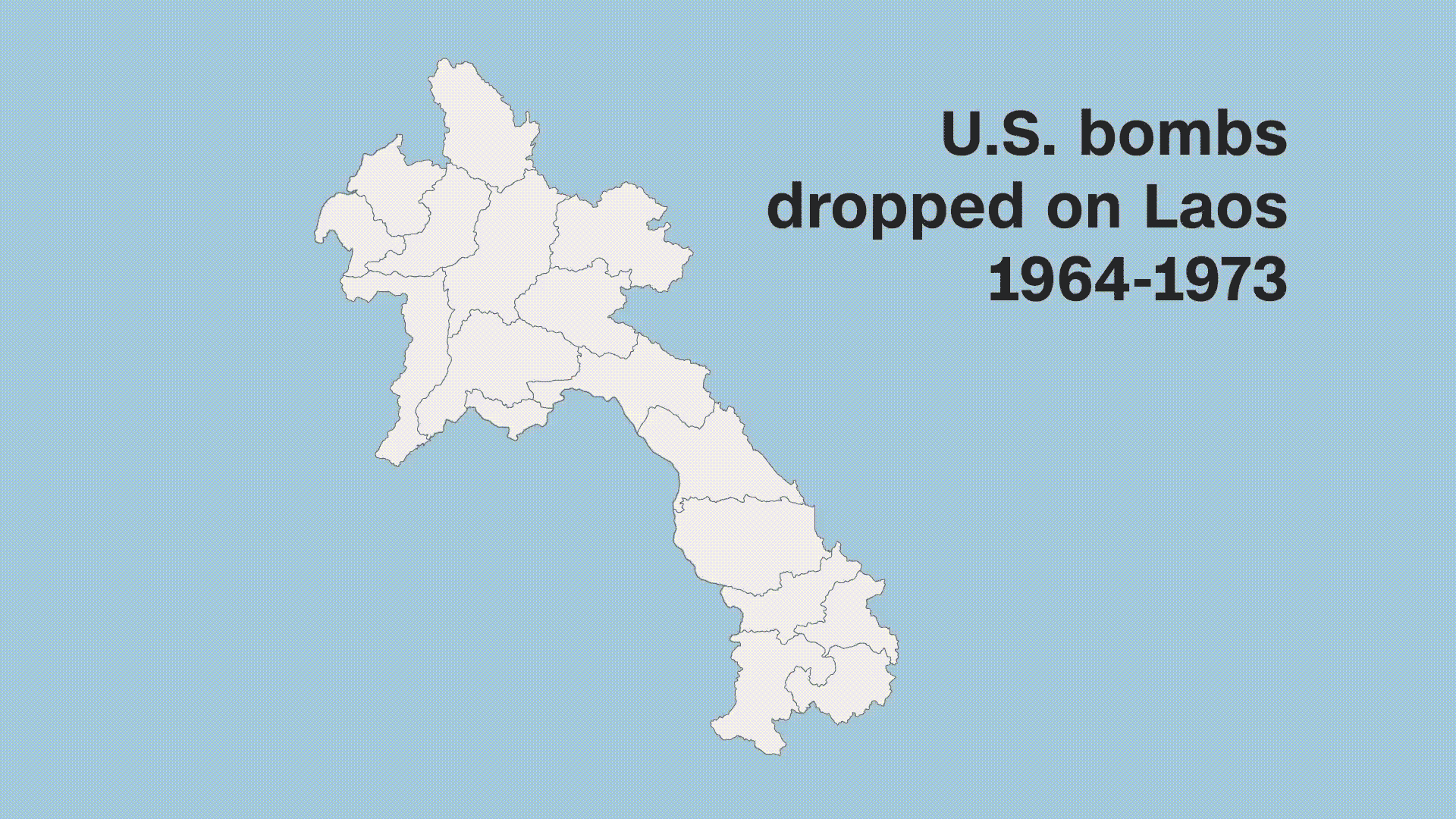 The United States dropped 270 million cluster munitions on Laos between 1964 and 1973, up to 30 percent of which did not dentonate. Source: https://www.irishtimes.com/news/world/asia-pacific/death-from-below-in-the-world-s-most-bombed-country-1.3078351